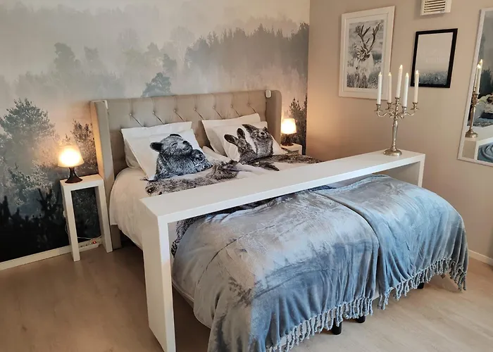 この寝室1室のホームステイはオウナスヴァーラから2.5キロメートル離れた所の場所にあります。 サンタパークはWinter Woods Family Roomから徒歩で20分です。